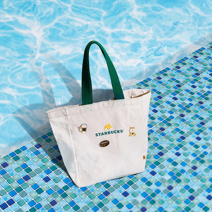 Starbucks Hong Kong - Shiba Inu Collection x Shiba Inu Canvas Tote Bag - Relaxing Design with 3 Metal Pin Set