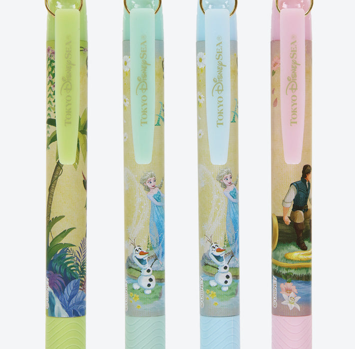 A set of 4 ballpoint pens with motifs of characters you can meet at Tokyo DisneySea's themed port ``Fantasy Springs'' is perfect as a souvenir.